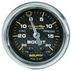 The Standard In The Industry, Autometers Mechanical Boost/Vac Gauges Have Found Their Way Into More Builds Than Any Other. Using A Patented, High Precision Bourdon Tube Meter Movement, There Isnt Another Gauge On The Market That Can Lay Claim To The Levels Of Accuracy Or Durability You" Ll Find Here. A Simple 1/8" Npt Pressure Connection Requires No Electrical Hookup For Operation. Includes 1/8" Npt Fittings And Nylon Line Kit.