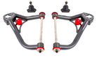 This gives you improved geometry and increased lateral grip during cornering situations. The upper arms also have revised cross shaft geometry and shorter overall length, requiring less shim stack to achieve negative camber on lowered cars, or race and pro touring vehicles with aggressive alignments. The combination of cross shaft design and the shortened overall A-arm length gives you a improved camber curve through the front suspensions range of motion.BMR Suspension AA005 Non-Adjustable Upper A-arms are available in black hammertone and red powdercoat for long-lasting good looks. Installation time is 3-4 hours. Proudly made in the U.S.A.Control arm hardware kit RH006 (Includes upper and lower control arm hardware - Highly Recommended) also available.
