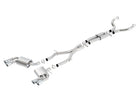This 3" diameter with 2.25" diameter tail pipes Borla(r) Cat-Back(tm) system is intended for vehicles with significant performance upgrades. It contains a merge X-Pipe for increased performance and improved sound. The system delivers the aggressive ATAK(r) sound with no drone inside the vehicle. Each muffler assembly has dual 4" round polished T-304 stainless steel tips. A system with carbon fiber tips is also available. The system will fit vehicles with Dual Mode Exhaust (NPP), but it does NOT include Dual Mode or AFM valves. On vehicles with AFM a check engine light will be activated. It may be used with the dual tip lower bumper cover to convert a single, split rear exit to a dual split rear exit. Borla(r) Cat-Back(tm) & Axle-Back exhaust systems feature patented straight-through and multi-core technology to unleash hidden horsepower. Increased exhaust velocity adds power, driving excitement, fuel economy, and the distinctive Borla(r) Sound of Power respected by motoring enthusiasts everywhere. Each system is built from premium T-304 austenitic stainless steel, superior to T-400 series knockoffs (such as 409), to give you the absolute best in performance and durability. Ultra-smooth mandrel bends ensure maximum flow & power, and precision computer numerical control (CNC) manufacturing ensures an accurate fit. Best of all, Borla(r) stands behind every system with a Million-Mile Warranty. Just what you'd expect from the world's most experienced (and most winning) exhaust brand.