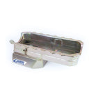 The Canton 15-580 front sump street oil pain is for the Australian market Holden V8. It has a larger oil capacity than stock but retains the same depth through the use of a T sump. Another important feature is it's louvered slosh baffle that offers better control over oil pan windage freeing up horsepower and keeping the oil where it belongs around the pickup. The gold iridite plated finish makes for good looks and a long lasting rust free service life. This oil pan requires our 15-591 oil pickup.