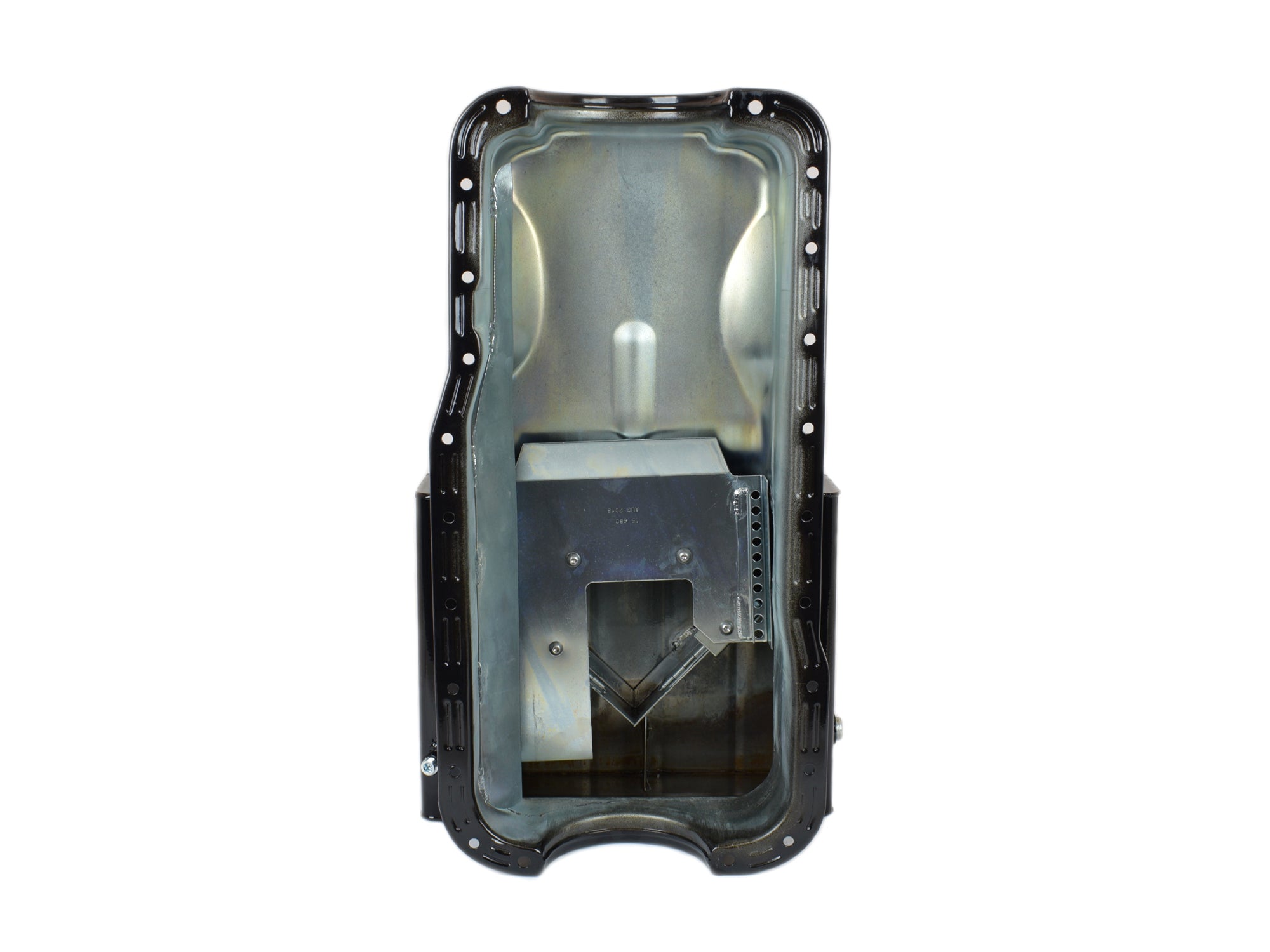 This black powder coated front sump road race pan is for Ford 351 Windsor blocks. It has an 8" deep, 13-1/2" wide front sump with a 9 qt. system capacity. Will work with stock & aftermarket starters. This pan requires our 15-661 pickup.