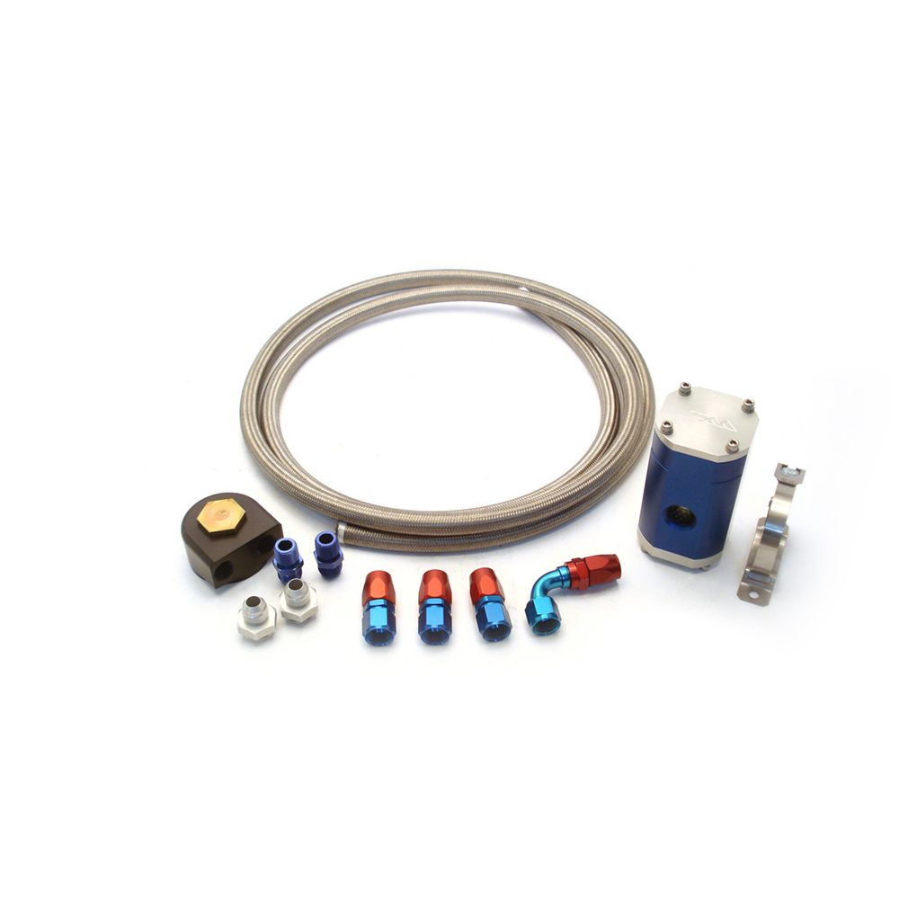 • Feature 4: Includes billet oil filter housing, high-flow fine filtration element, a 90-degree rotating billet aluminum block adapter, 8-feet of stainless steel braided hose and all of the necessary fittings