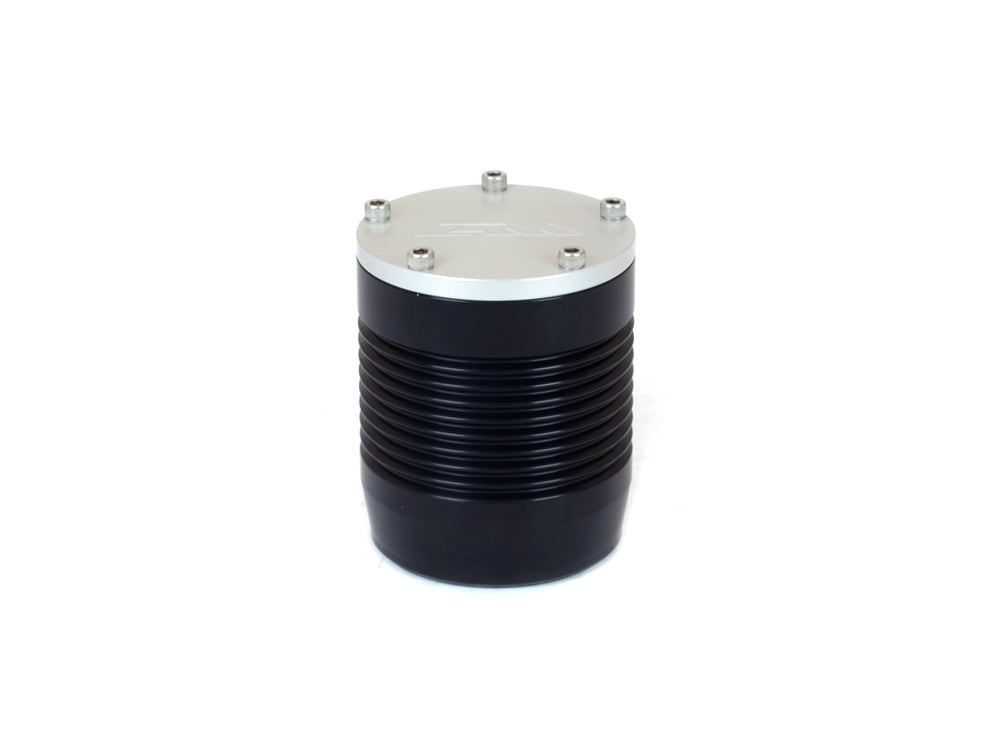 This 4.25" tall billet spin-on filter has 20MM threads and a standard size o-ring. Like all CM filters it features a billet aluminum body built for strength and durability for a lifetime of use. Heat sink ribs add to filter's functionality and aggressive aesthetic. The filters bottom cap is easily removed with four bolts for filter element inspection and replacement. A CM 2-5/8" tall synthetic fiber filter element which flows 15 GPM of hot engine oil with no loss of pressure and filters down to 8 microns comes preinstalled.