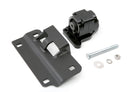 The driver side engine mount brackets are made from 1/4" mild steel that is laser cut for precise fitment. The bushing housing is CNC machined from a solid block of aluminum. And like our rear motor mounts these bushings are made from rubber instead of urethane.