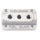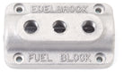 Edelbrock has reintroduced the vintage cast aluminum fuel blocks for dual, triple and quad carb applications for your hot rod or custom vehicle. Edelbrock fire wall mounted fuel blocks feature a single 3/8" NPT inlet and two, three or four 1/4" NPT outlets, depending on application. Each fuel block has four holes for mounting to a fire wall and are available with a satin aluminum or polished finish. Triple fuel blocks can also be used with any dual carb installation by blocking off the unused outlet with pipe plug #662043 or any similar 1/4" -18 NPT plug. The third outlet can also be run to fuel pressure gauge if desired.