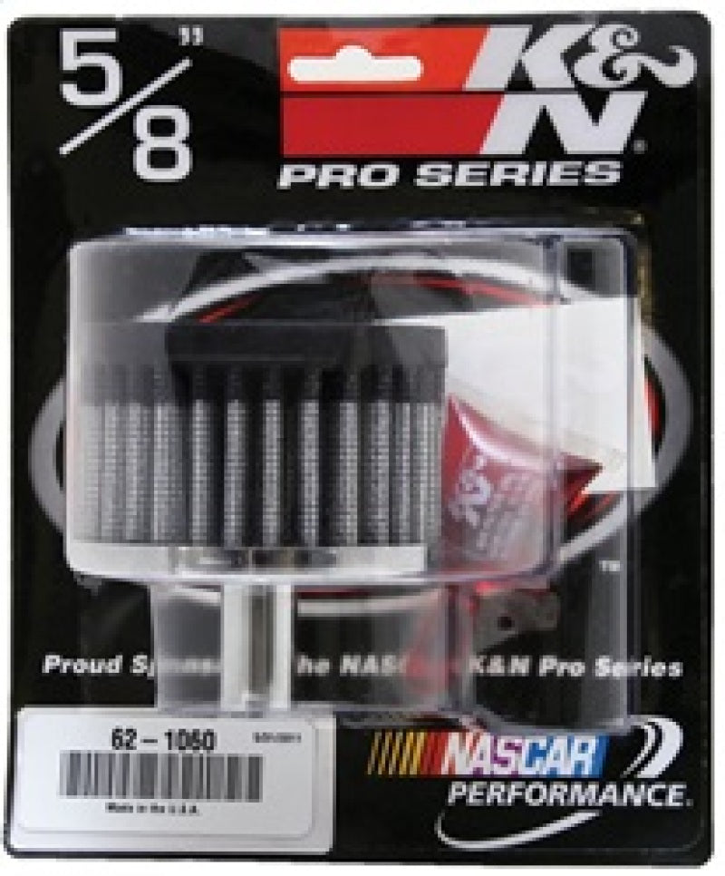 K&N crankcase vent filters are perfect for racing applications, vintage cars or individuals who want to add some aesthetics to their classic carbureted engine. The 62-1060 crankcase vent filter has a rubber top with a chrome-plated steel base. The 5/8 inch diameter zinc tube is designed to push in and clamp directly on to metal or plastic tubing where venting is needed. Constructed with a cotton gauze filter media it can be cleaned and reused repeatedly. Comes with a 14.79 milliliter pillow-pack of air filter oil.