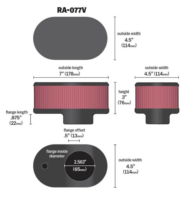 K&N Universal Chrome Air Filter 2-19/16in FLG 7 x 4-1/2in Base 3in Height