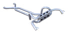 This header back system includes a driveshaft tunnel X crossover kit for maximum ground clearance even on lowered vehicles. Manifold downpipes are available as an option for those that do not have headers. Great for even the highest performance (up to 600 hp) applications where ground clearance and OEM look is a priority. Pipes and muffler are 409 stainless steel. This is the last exhaust system you will ever need for your car.