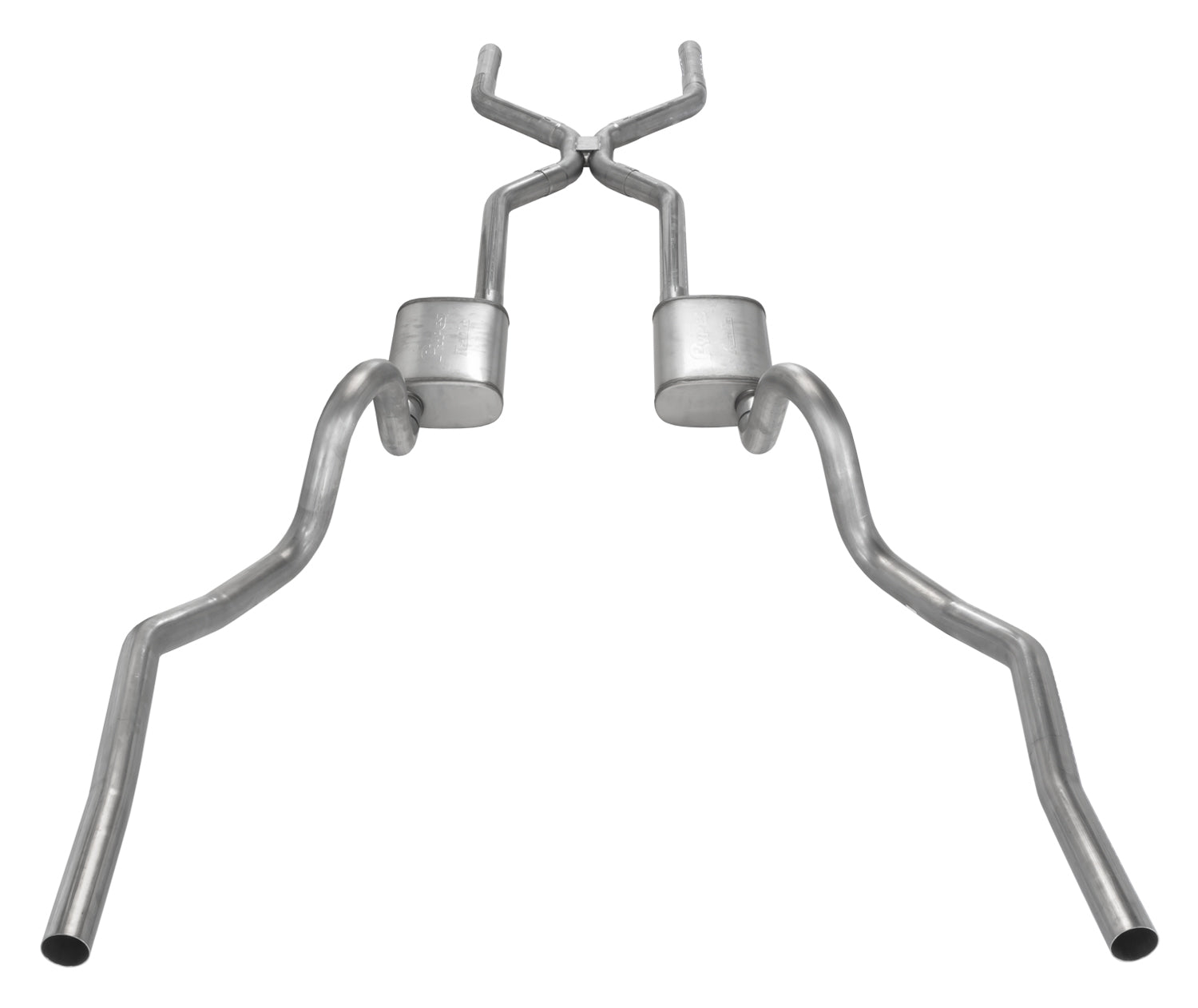 Crossmember Back w/H-Pipe Exhaust System 70-71 GTO/68-72 442 Dual Split Rear Valance Exit 2.5 in Intermediate And Tail Pipe 18 in Race Pro Mufflers And Hardware Incl Tip Not Incl Pypes Exhaust