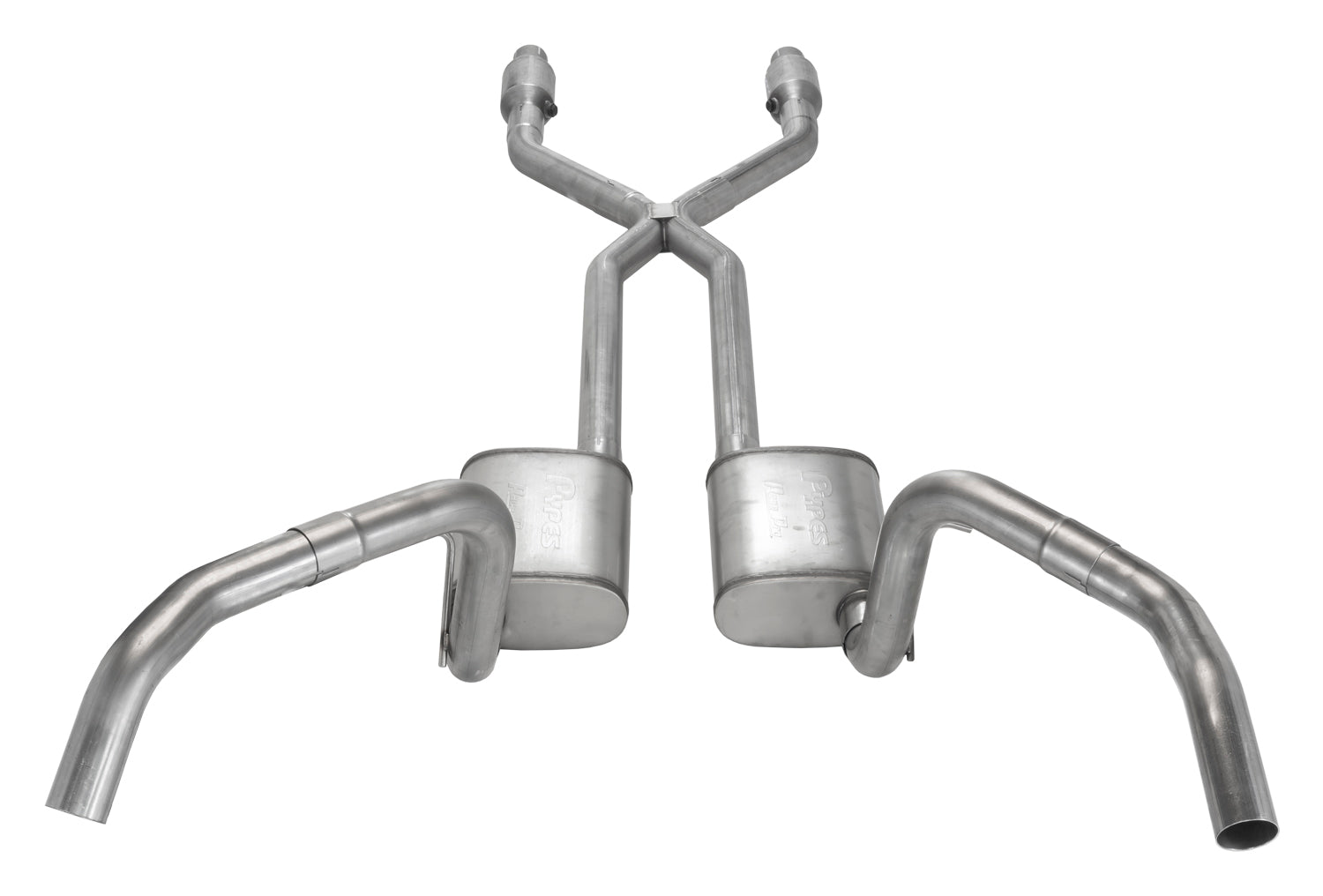 Crossmember Back w/X-Pipe Exhaust System 75-81 F-Body Split Rear Dual Exit 2.5 in Intermediate And Tail Pipe Race Pro Mufflers/Hardware Incl Catalytic Converter Incl Pypes Exhaust