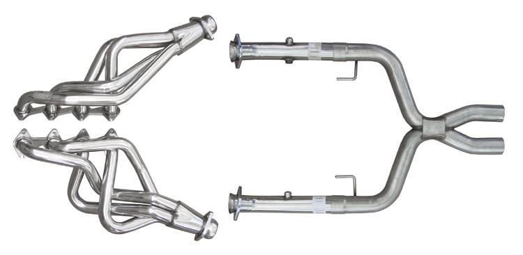 Header 2005-2010 Mustang GT 3.4in Length Design Long Tube Hardware Incl Polished 304 Stainless Steel Incl PN XFM55 X-Pipe Exhaust