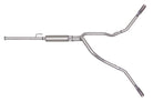 For the extremist who wants to take their truck to the next level, this dual bolt-on Cat back system is for you. This system exists behind the rear tires at an aggressive angle with a powerful exhaust tone. You will gain bold street looks with powerful dyno tuned and tested street performance gains. You can expect to experience gains on average of 15-20 horsepower. Gibson muffler provides a mean performance sound and complemented with polished Stainless Tip. Easy bolt-on installation. No welding required. Backed by a Lifetime Limited Warranty. If you want Extreme, this system is it.