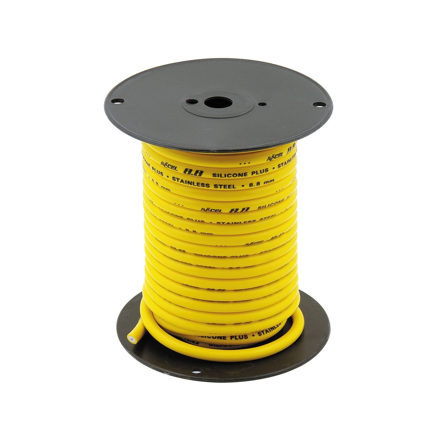ACCEL allows you to build wires to the custom length you demand with their 60 ft. spools of yellow jacketed 8.8mm, 16 gauge, silver plated stainless steel core wire.