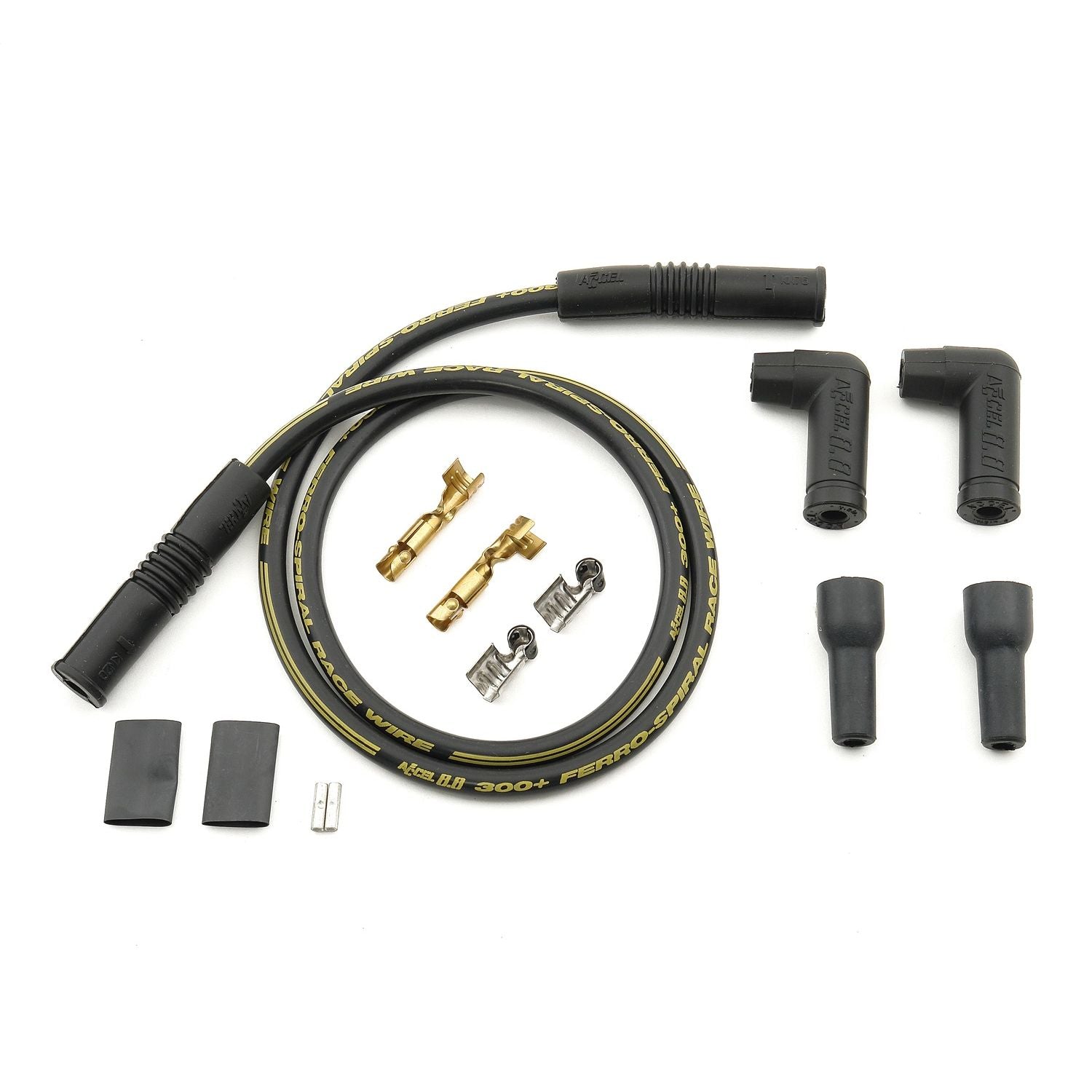 ACCEL Motorcycle 300+ race wires provide the peak ignition output you need for race-winning or maximum street performance. The extra thick 8.8mm silicone jacket and silicon insulation eliminate electrical leakage or RFI interference that interrupts control modules. 300+ Wire delivers peak performance even at high temperatures over 550 degrees F. The ultra-strong Aramid core and fiberglass braiding provide resistance to vibration and wire stretch to make a wire set that is durable and reliable. The low 150 ohms/ft. resistance of the Ferro-Spiral core material deliver maximum spark energy to the spark plugs without diminishing or suppressing the spark energy.