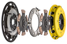 T3R-F07 race, twin disc kit offers twice the number of disc surfaces for better wear, heat capacity and long life compared to single disc kits. These kits use a proprietary Positive Lift Floater System design, which results in quiet operation with no floater rattle and no posts to wear. ACT twin disc kits undergo an exclusive four-stage, heat-treating process on all diaphragms. The ACT twin disc features the ability to adjust for disc wear and provides equal disengagement for discs. ACT's 6-pad rigid race discs are made with high quality, ceramic friction materials. The chrome-moly hub is heat-treated for strength and durability. The lightweight, rigid design allows for quicker shifts and trouble-free service. All ACT twin disc kits include a CNC-machined and dynamically balanced flywheel to ensure trouble-free installation and operation. ACT twin disc kits include a pressure plate, two discs, a floater, flywheel and alignment tool. Some kits may include a pilot bearing and release bearing.