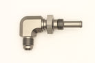 DeatschWerks 6AN Male Flare To 5/16in. Male Barb Bulkhead Adapter 90-Degree (Incl. Nut)