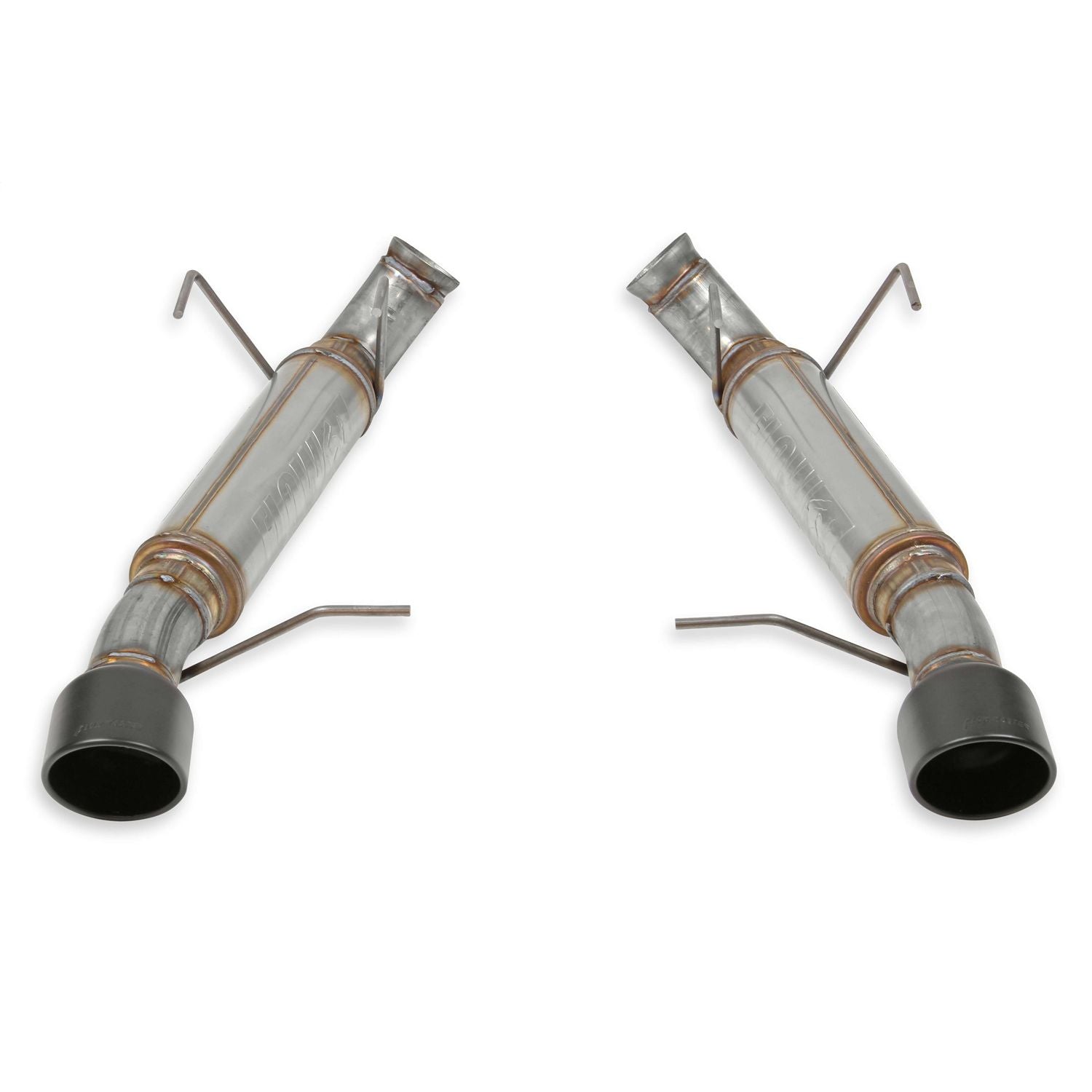 Introducing our new FlowFX Axle-back exhaust system for 2013-2014 Ford Mustang GT coupes, convertibles and 2013 Boss 302 models with the 5.0L engine. Features include dual 3.00-inch mandrel-bent stainless steel tubing running into a pair of compact round FlowFX "straight-through" performance mufflers for a deep tone. The large 3.00-inch core mufflers provide maximum performance, are constructed from bright 409S stainless steel and utilize the factory hanger locations for an easy installation. The mufflers are finished off with large 4.50-inch black ceramic coated stainless steel tips filling out the factory exhaust cutouts. Designed for easy installation, includes all necessary parts, hardware, and detailed instructions. The system is covered by our Lifetime Limited Warranty.