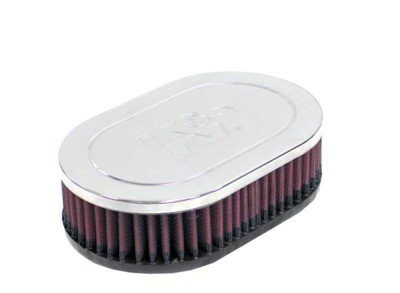 K&N Universal Chrome Filter Dual Flange Oval - 4.5in Base & Top O/S W x 7in Base & Top O/S L x 2in H