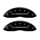 MGP 4 Caliper Covers Engraved Front Charger Engraved Rear RT Black finish silver ch