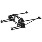 Available for 1967-1979 Mopar A-body vehicles with an 8 3/4'' rear axle assembly, this revolutionary system replaces leaf springs with a 6-link suspension. The 6 links replicate the geometry of the tried-and-true 4-link while still mounting to the existing locations on the chassis. This system provides an easy, bolt-in option to replace your leaf springs without having to do any cutting, welding or fabricating, Now you can get the performance that comes with coil-over shocks without taking a torch to your Mopar. The Rear Suspension Conversion System positions the roll center near the original location, so it works well with stock or modified front geometry. Made of tubular steel, this system provides smooth, bind-free movement that eliminates the need for special links or compliant bushings like typical 3- and 4-links. It's available with QA1 single, double, or 4-way adjustable shocks with soft, medium and firm spring rates to dial in the perfect ride. It works with the factory fuel tank, and is designed for 26 inch fender height with 27 inch tall tires with 1 inch of ride height adjustability in either direction. This conversion system includes shocks, springs, frame brackets, axle brackets, linkage assemblies, center cross member assembly, sway bars, spanner wrench and all the necessary hardware.