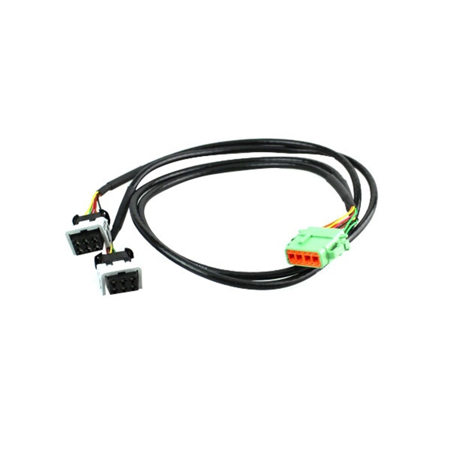 This harness features a 37 in. cable for attachment to the sensors. Designed to connect the Racepak AF4 series of A/F controllers to two AMP air/fuel sensors. Connects to A side (green connector).