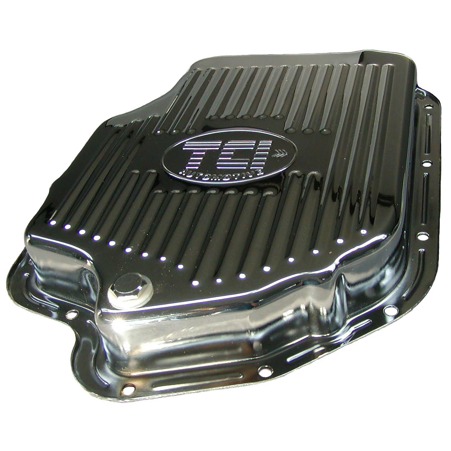 These stock-depth TCI replacement pans can spice up the undercarriage of any vehicle. The included drain plug makes transmission service a snap. These pans are thicker than stock so you won't have to worry about warped, leaky pan rails and the chrome plating means no more rust, such as you might see with a lesser quality stock pan.