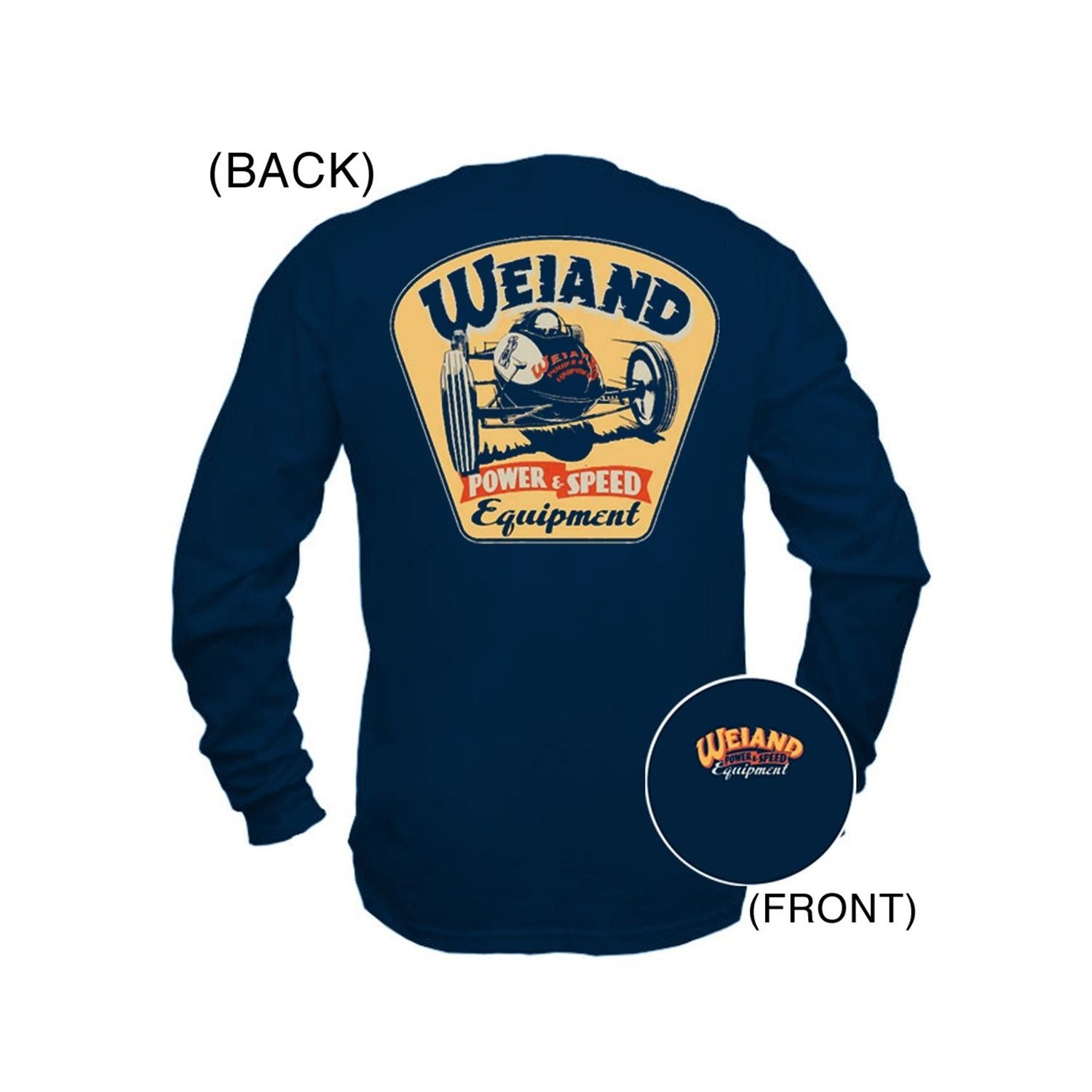 100% cotton preshrunk Hanes Beefy Tee featuring full-back screenprinted Weiand Retro artwork. Retro logo is featured on the left chest.
